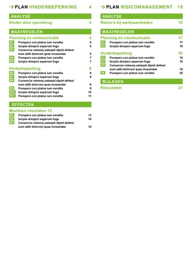 Deze template biedt een strakke en heldere opmaak in Arial 9pt met een regelafstand overeenkomend met 1,15 uit Word – beide veelvoorkomende eisen in een leidraad. De overzichtelijke twee kolomsindeling zorgt voor een prettige leeservaring.